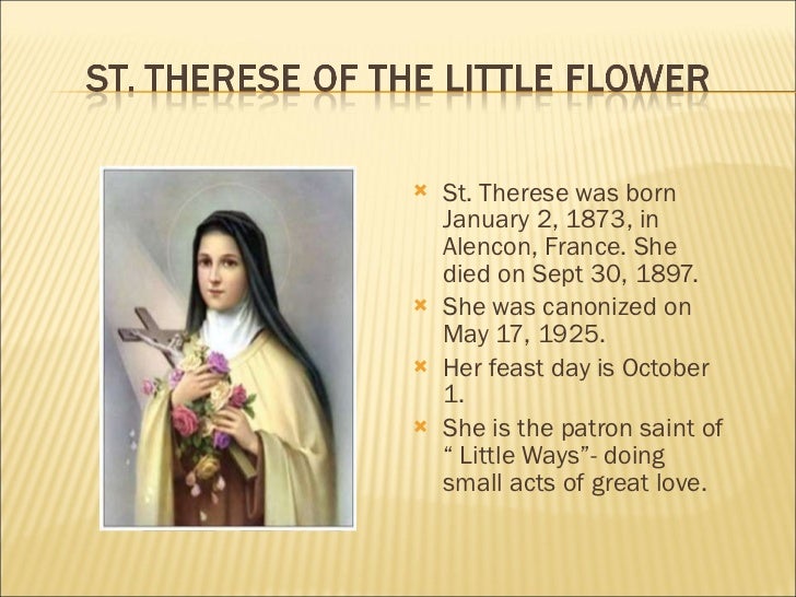 We are joyously anticipating celebrating St. Thérèse the Little Flower on October 1st. Therese of Lisieuxs Feast Day with a nine-day Novena beginning on September 23rd and.